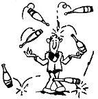 Wir machen freies Training. Das heißt, man braucht sich nicht an- oder abzumelden, sondern kann kommen und gehen wann man will. Freies Training heißt aber auch, dass wir nicht explizit Jonglierkurse anbieten. Man kann jederzeit auf andere zugehen und sich Tipps und Anleitung holen. Die bieten wir immer gerne, nur "intensiv-Privatunterricht" können wir nicht leisten. Wenn jemand ernsthaft Interesse und etwas Eigeninitiative mitbringt, funktioniert das auch mit Anfängern normalerweise prima. Eigenes Jongliermaterial braucht man nicht unbedingt (es sei denn, man möchte zu Hause üben). Die meisten Geräte haben wir als Gruppeneigentum.